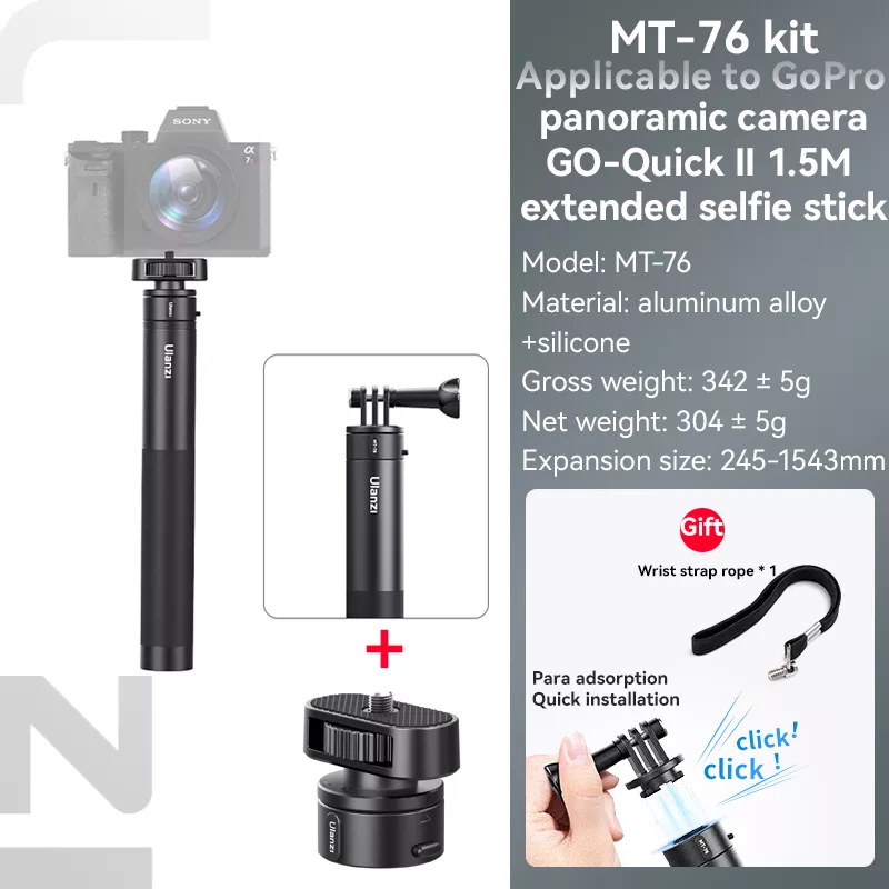 Take your outdoor adventures, travel vlogs, and creative shots to the next level with this versatile 1.5M extendable selfie stick tripod. Designed for action cameras, panoramic cameras, and smartphones, it gives you the freedom to capture wide perspectives and dynamic angles effortlessly. Whether you’re hiking, vlogging, or recording sports action, this all-in-one tool is built to deliver stable, professional-looking footage.