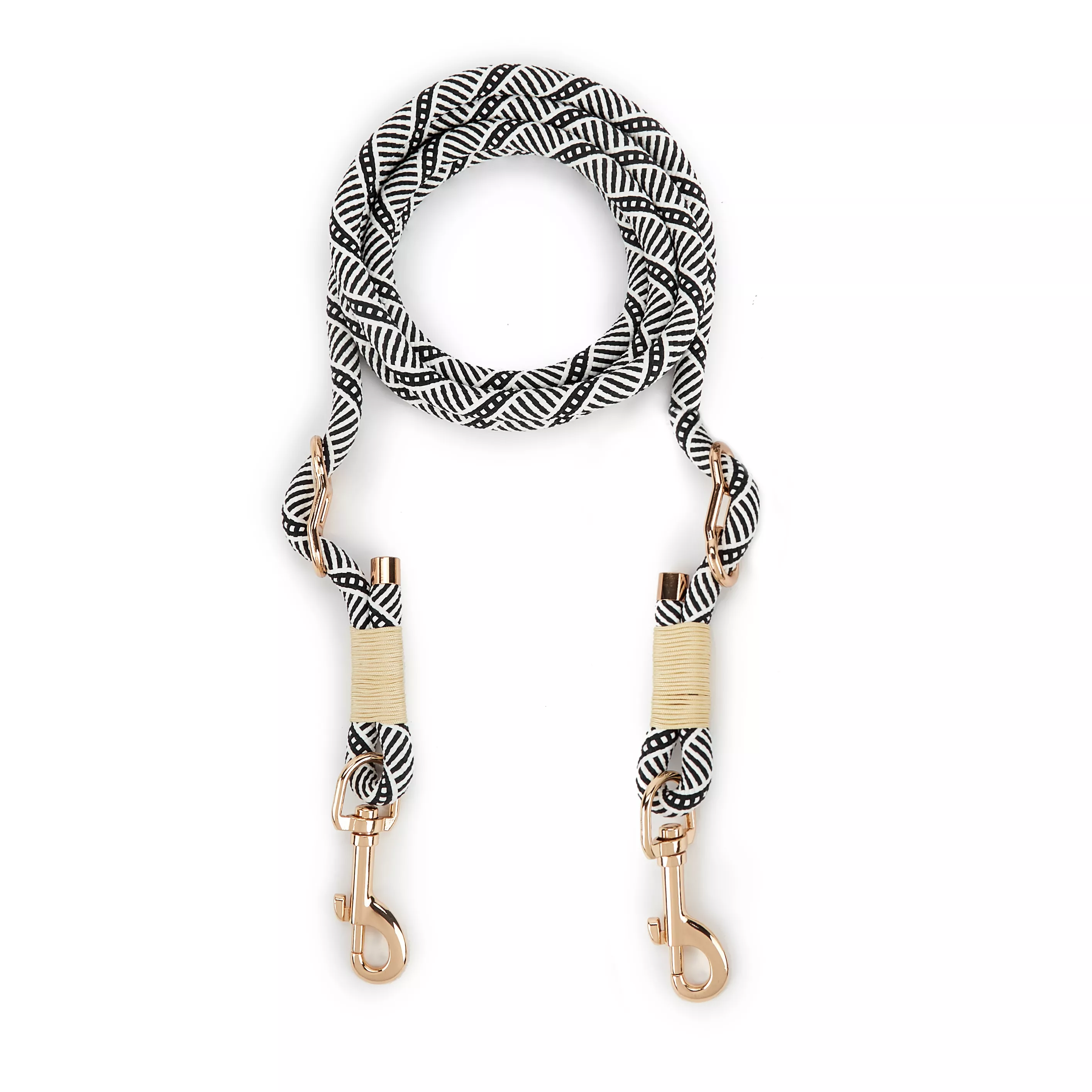 Crafted from durable nylon webbing and finished in stylish black-and-white or turquoise, this leash delivers a premium feel with a fashionable touch. With its adjustable structure and hand-woven details, it offers dependable performance for outdoor walking, running, training, and everyday handling. Quick-release functionality makes transitions fast and smooth, while the breakaway element adds an extra layer of safety.