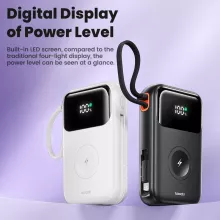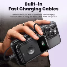 • Built-In Cables: Equipped with a USB-C and Lightning fast-charging cable, this power bank eliminates the need for extra cables. Just grab and go!
