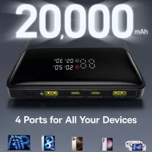 - Massive Capacity: With 20,000mAh, charge your devices multiple times on a single charge.
