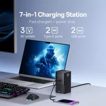 The 100W Fast USB Charger 6-in-1 Power Strip is the ultimate charging solution for anyone who uses multiple devices throughout the day. Its six charging ports ensure you never run out of options, while the 100W power output guarantees that even your most demanding devices like MacBook and other laptops charge quickly and efficiently. Whether you need to power your iPhone, charge your MacBook, or top up your AirPods, this charger has you covered.