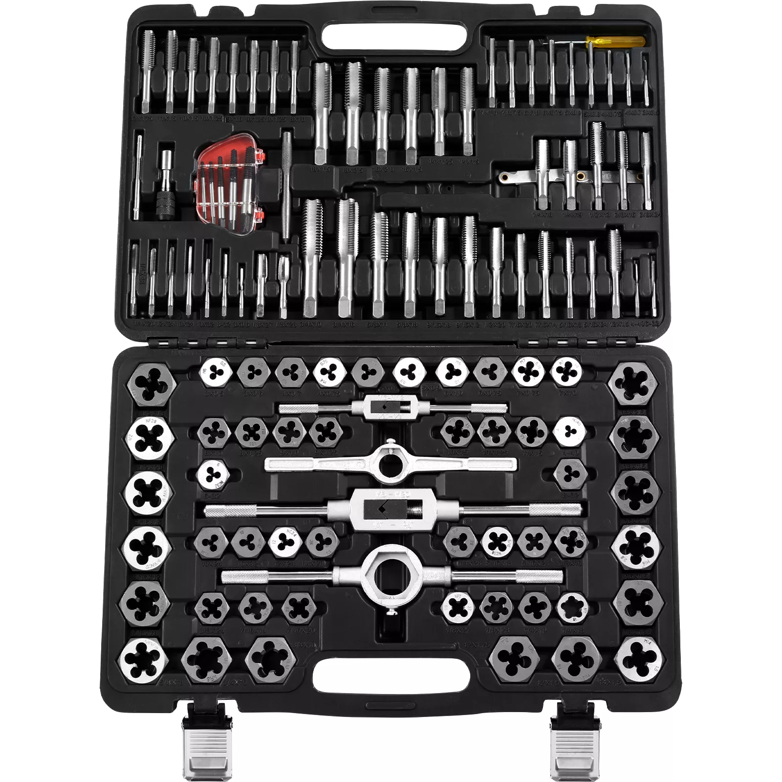 - All-inclusive 116-piece set: Includes 51 taps, 51 dies, wrenches, pitch gauges, screwdrivers, and extractors.