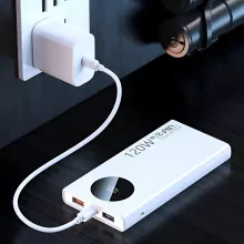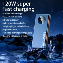 Experience the ultimate convenience of portable power with this high-capacity 120W fast-charging power bank. Whether you’re on a long journey, working remotely, or just preparing for unexpected emergencies, this lightweight battery pack delivers reliable and efficient charging for all your devices. With a sleek design and real-time digital display, it’s the perfect companion for your tech essentials.