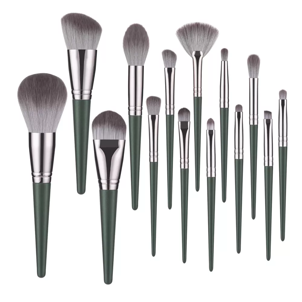 Transform Your Makeup Routine with Our 14-Piece Green Cloud Brush Set