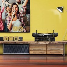 What sets our karaoke mixer system apart is its unique combination of performance and ease of use. Its ultra-high frequency operation ensures a stable, interference-free audio experience. The built-in pop filter guarantees a consistent, superb sound quality, free from unwanted noise. Adjusting settings is a breeze with intuitive rotatory control knobs, allowing you to tailor the sound to your liking effortlessly.