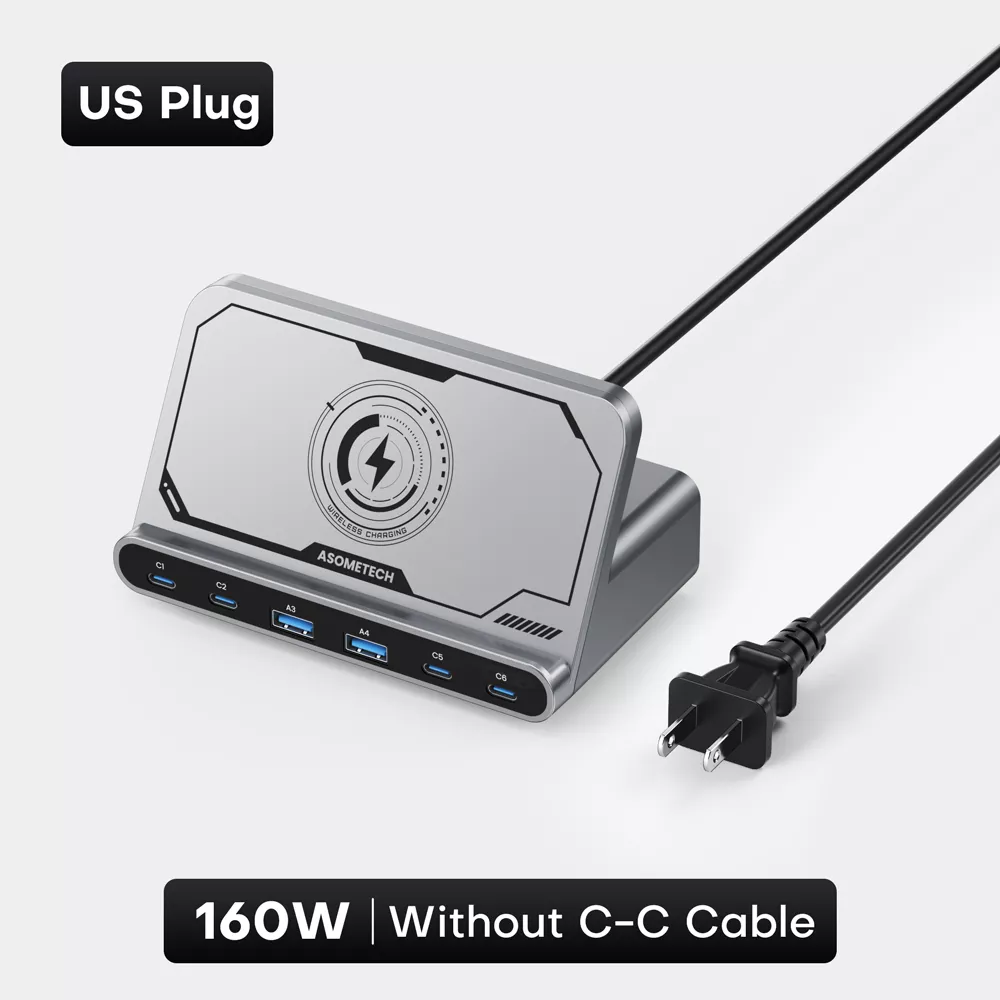 160W Multi-Port USB-C Desktop Charger with Wireless Fast Charging