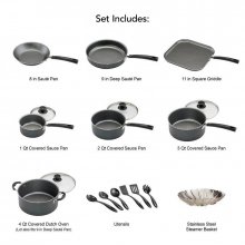 - Comprehensive 18-piece set perfect for setting up a new kitchen or updating your cookware.