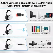 Experience the ultimate gaming audio with this advanced 2.4GHz wireless Bluetooth gaming headset. Designed for gamers, it delivers crystal-clear 3D stereo surround sound with dynamic EQ and ultra-low latency, ensuring real-time audio synchronization during intense gameplay. Equipped with a detachable microphone, strong bass, and compatibility across multiple platforms, this headset is your go-to choice for immersive gaming, seamless communication, and extended play sessions.
