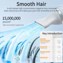 - Smoothing Hair Technology: The powerful negative ion function leaves your pet’s coat smooth, fluffy, and shiny while easily detangling knots.