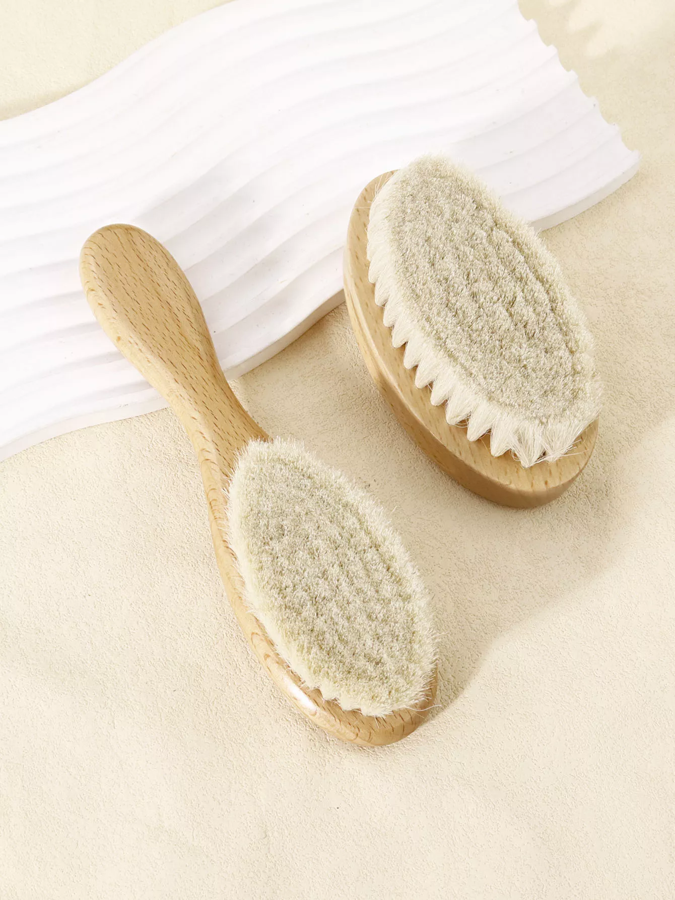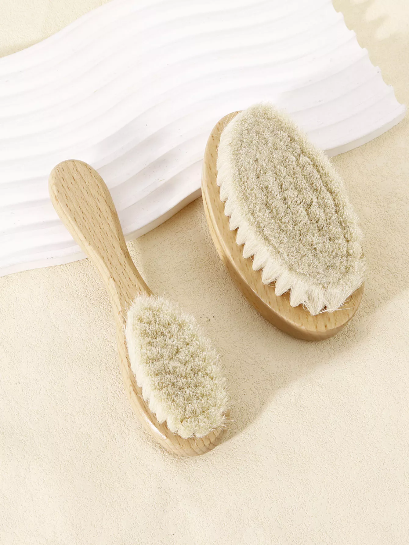 2-Piece Natural Wood Soft Bristle Brush for Neck & Wig Hair Care
