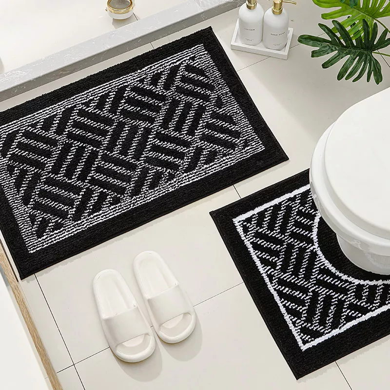 This set stands out because of its flocking material, which creates a smooth, velvety surface that feels soft underfoot but stays strong with daily use. Unlike ordinary bathroom mats, this one is made with a non-slip backing to help keep it firmly in place, reducing the risk of slipping on wet floors. The bold striped pattern adds a touch of modern style that fits perfectly in bathrooms, toilets, entryways, or even small living room areas.