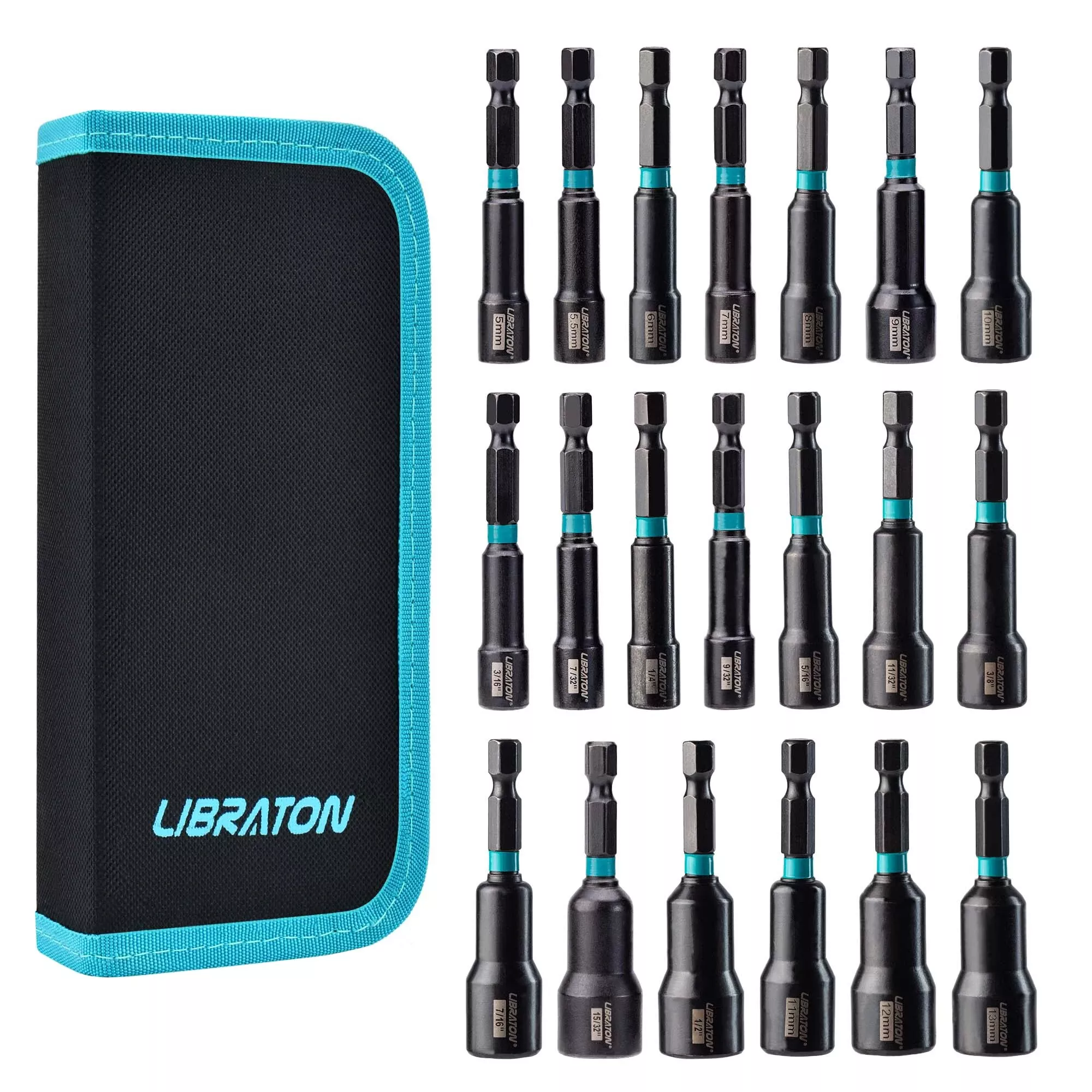 - Complete 20-piece set covers all common metric and SAE sizes