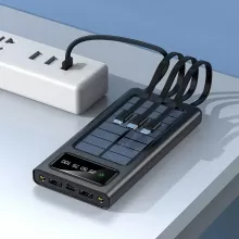 This solar power bank is designed to meet all your charging needs with ease. Featuring multiple output ports including USB, Type-C, and Lightning, it can charge up to four devices simultaneously. The built-in cables eliminate the need for extra cords, providing ultimate convenience. With its impressive 200000mAh capacity, it delivers long-lasting power for your devices, and the digital display shows you exactly how much battery is left. The LED light function adds extra utility, making it an ideal option for outdoor activities or emergencies.