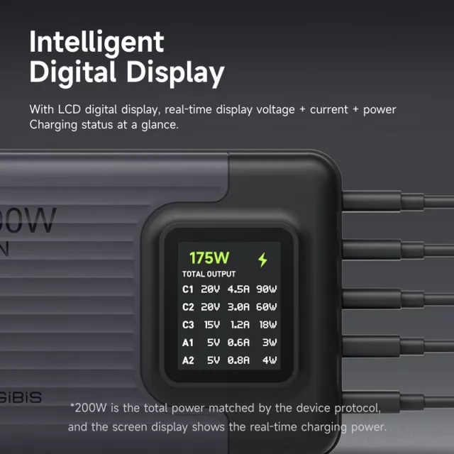 • Real-Time LCD Display: Monitor your charging status easily with the LCD screen that provides instant data for each port.