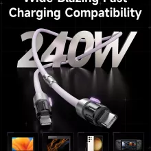 - Blazing 240W Power Delivery – Enjoy ultra-fast charging with 240W max output and a built-in E-marker chip for safe, high-speed power delivery.