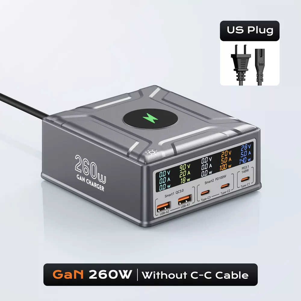 260W GaN Desktop Fast Charger with 140W USB-C and Wireless Pad