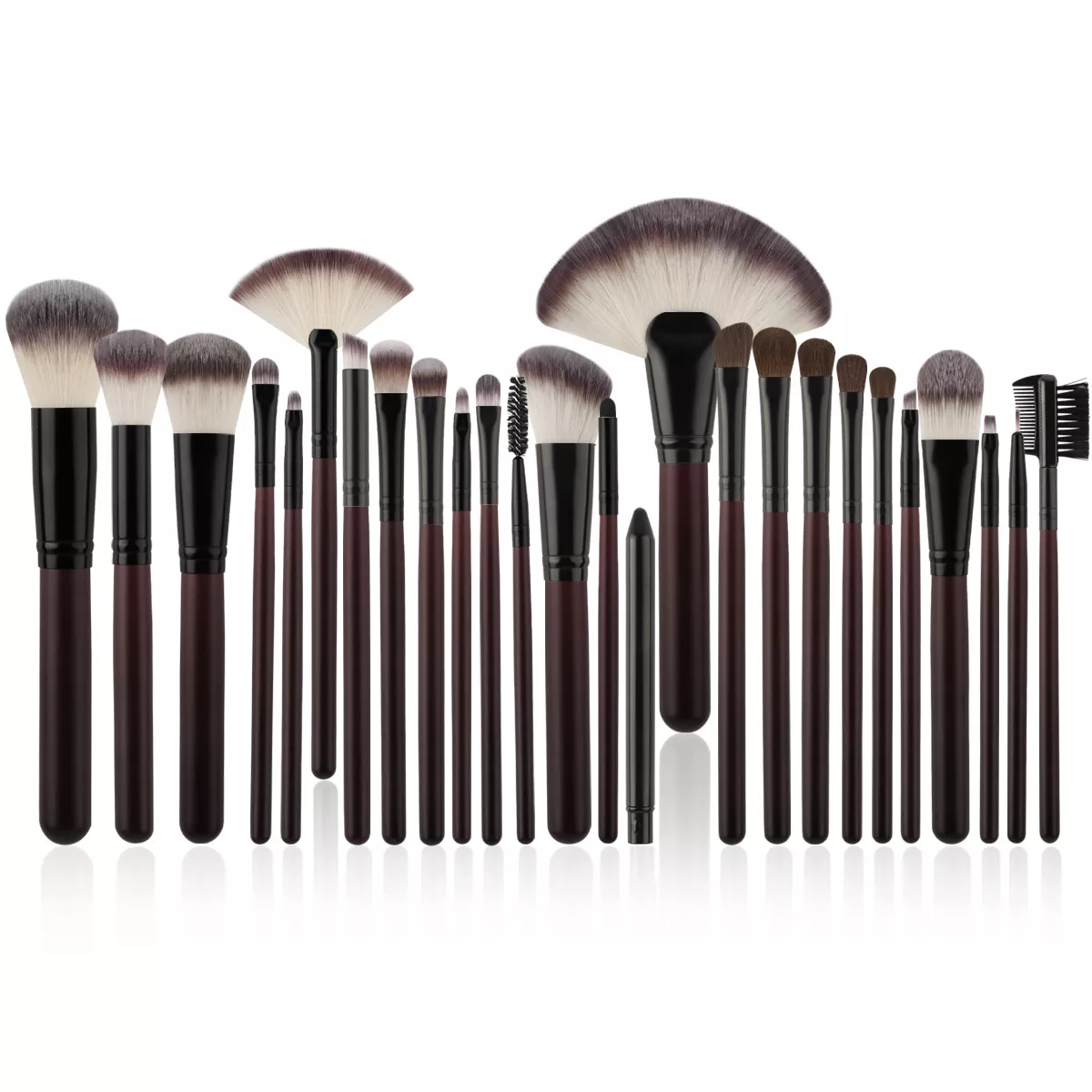 - 26 high-quality brushes designed for powder, foundation, blush, contour, concealer, eyeshadow, eyeliner, eyebrow, and lip applications.