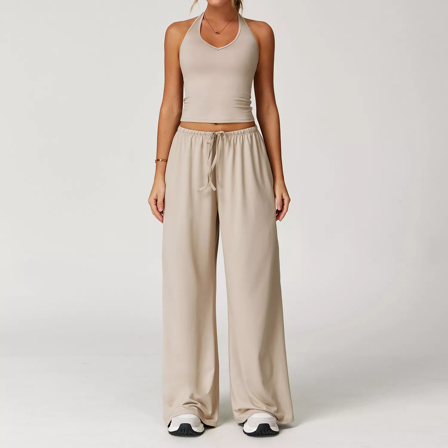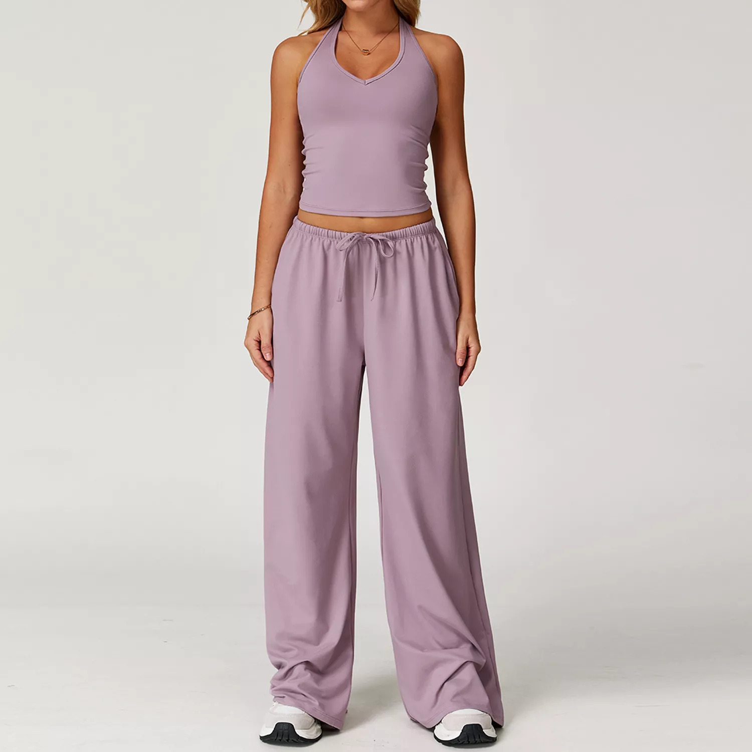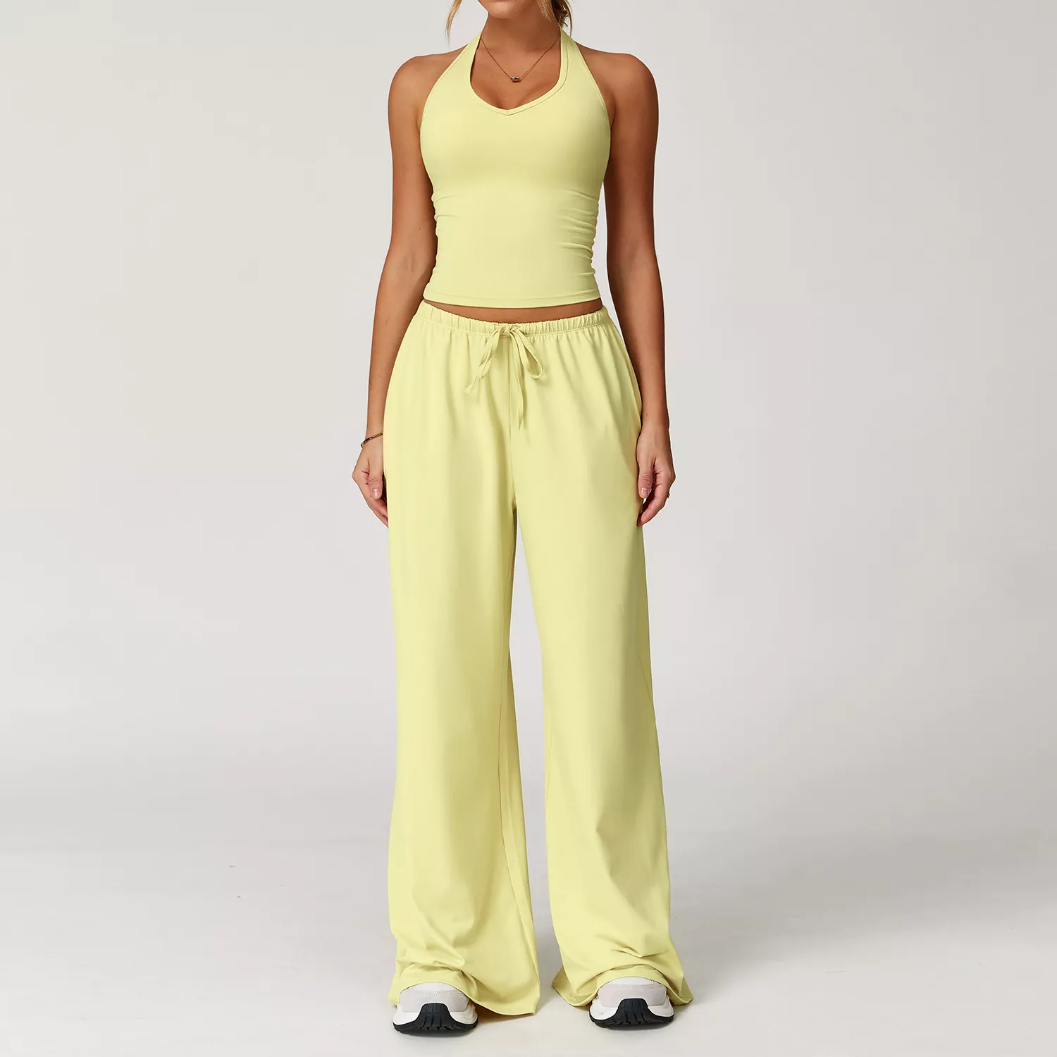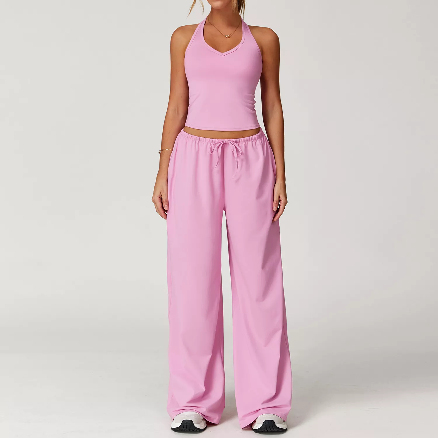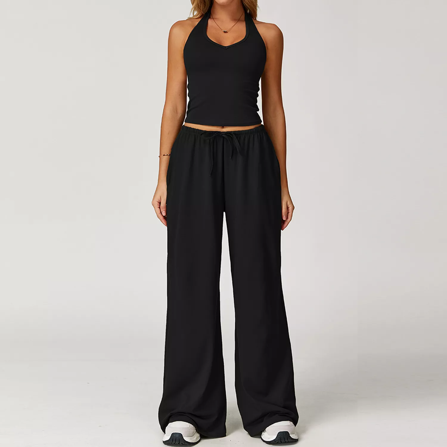 This versatile set is suitable for summer, winter, spring, and autumn, making it your go-to activewear year-round. Whether you’re flowing through a yoga class, hitting the gym, going for a run, or just lounging in style, it delivers the right balance of performance and fashion. The high-waisted pants with an adjustable drawstring provide a secure fit, while the crop top’s sleeveless design allows for complete freedom of movement.