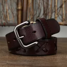 Enhance your wardrobe with the sophistication and rugged charm of this 3.8CM Handwoven Genuine Leather Belt for Men. Crafted from premium cowskin leather and featuring an intricate handwoven design, this belt combines luxury with durability. Designed for men who appreciate fine craftsmanship, this belt is perfect for pairing with jeans, cowboy outfits, or casual wear. Its solid pattern and sleek buckle make it an essential accessory for adding character and style to any outfit.