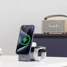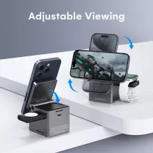Unlike ordinary chargers, this station combines versatility and efficiency into a single, space-saving solution. Its foldable structure makes it ideal for travelers who want a clutter-free charging setup. The magnetic wireless charging ensures seamless compatibility with Apple devices, providing a hassle-free experience without messy cables.