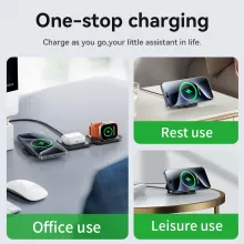 This multifunctional charger is perfect for anyone who wants to keep their devices charged and ready without the hassle of multiple chargers and cables. Ideal for use at home, in the office, or while traveling, this 3-in-1 charger adapts to your lifestyle, making it easier than ever to keep all your essential tech powered up. Its powerful magnetic capability ensures a secure connection, and the fast charging feature means you’ll never be left waiting.