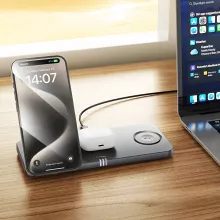 Experience the convenience of a clutter-free, 3-in-1 wireless charger built specifically for your Apple devices. Keep your iPhone, Apple Watch, and AirPods powered up and ready for your day. Upgrade your charging setup today and enjoy ultimate simplicity and style!