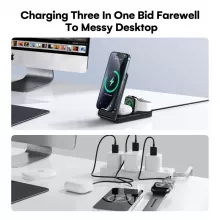 - 3-in-1 Charging Station: Charges your iPhone, Apple Watch, and AirPods simultaneously.