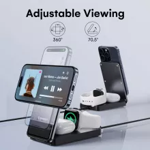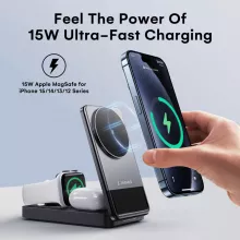 The combination of portability, functionality, and style makes this charging station stand out. Its foldable design is perfect for travel, while the magnetic wireless charger ensures your devices stay securely in place during charging. With the ability to charge three devices simultaneously and deliver up to 30W of power, it’s a game-changer for Apple enthusiasts who need a reliable and efficient charging solution.