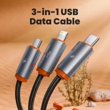 - 3-in-1 Design: This cable offers three connectors in one—USB A, Lightning, and Type-C—allowing you to charge and transfer data across multiple devices without the need for extra cables.
