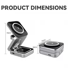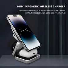 The 3-in-1 Wireless Charging Magnetic Stand combines convenience, efficiency, and style. By allowing you to charge three devices simultaneously, it eliminates the need for multiple chargers and tangled cables. Its magnetic design ensures your iPhone stays securely in place, while its fast-charging technology delivers power when you need it most. Sleek, minimal, and built for Apple users, this stand enhances your charging experience like no other.
