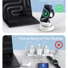 - 3-in-1 Design: Simultaneously charges your iPhone, AirPods, and Apple Watch in one convenient stand.