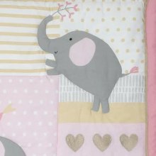 Bring a touch of elegance and whimsy into your little one’s nursery with the 3-Piece Elephant Crib Bedding Set. Enveloped in soft hues of pink, gray, and white, this ensemble creates an enchanting space for your baby to drift into dreamland. The contemporary design showcases Eloise, a charming elephant with oversized pink ears, accompanied by her playful bird friend. With the gentle contrast of the colors, it’s the perfect blend of style and comfort.