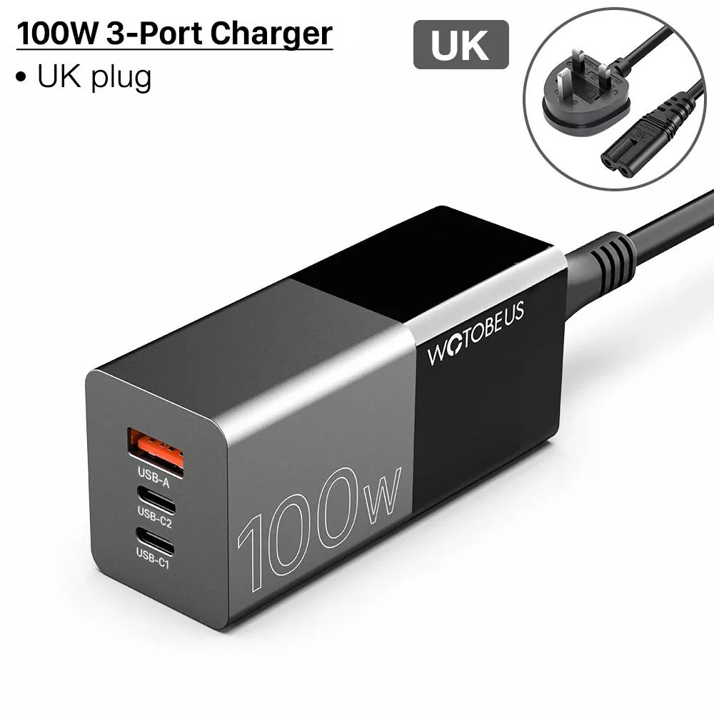 3-Port 100W GaN USB-C Wall Charger PD PPS QC5.0 Fast Adapter for Laptops & Phones