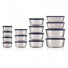 The set includes a diverse range of round and square glass vessels, complemented by snug-fitting navy lids. The sizes vary to suit all your storage requirements, from large 7-cup round vessels to handy 1-cup rounds, ensuring every meal component has its place. The glass is engineered to withstand microwave, pre-heated oven, refrigerator, and freezer use, making it a versatile choice for any kitchen scenario.