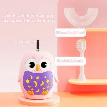 This isn’t just any children’s toothbrush. Our 360-Degree U-Shaped design ensures that every nook and cranny of your child’s mouth is reached, offering a thorough cleaning experience. With its owl-themed design, it’s a delightful addition to your child’s morning and night routine, making brushing a fun activity rather than a chore. The added benefit of blue light disinfection provides an added layer of hygiene, ensuring that your child’s toothbrush is free from harmful bacteria.
