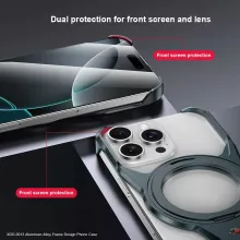 The sturdy aluminum alloy frame ensures maximum protection for your iPhone, keeping it safe from accidental drops, bumps, and scratches. The precise cutouts provide easy access to all ports, while the wireless charging compatibility means you can charge your phone without removing the case. Available in elegant silver and dark green, the design exudes sophistication, complementing your iPhone’s sleek aesthetics.
