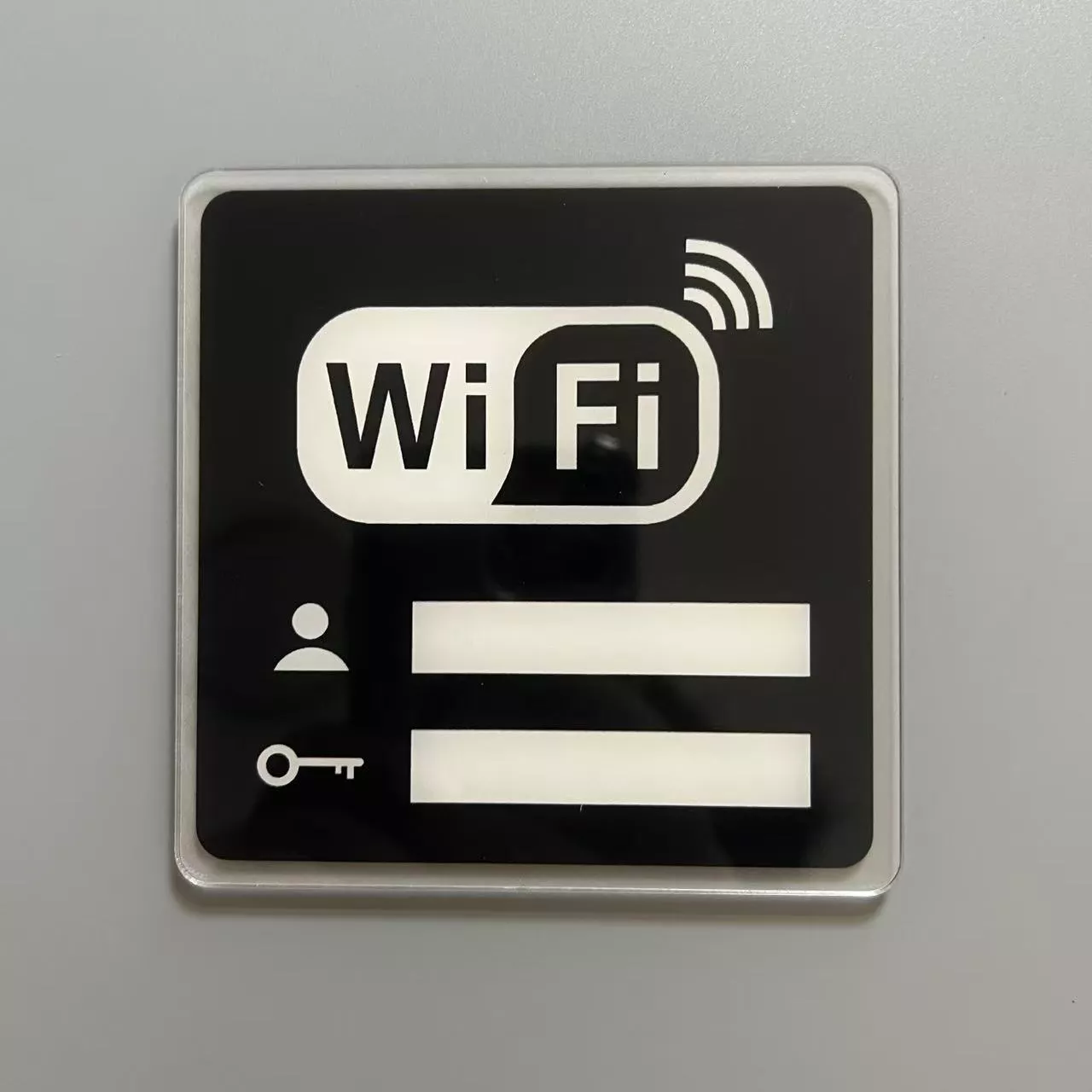 • Rewritable Surface – Easily update WiFi credentials with any erasable marker.