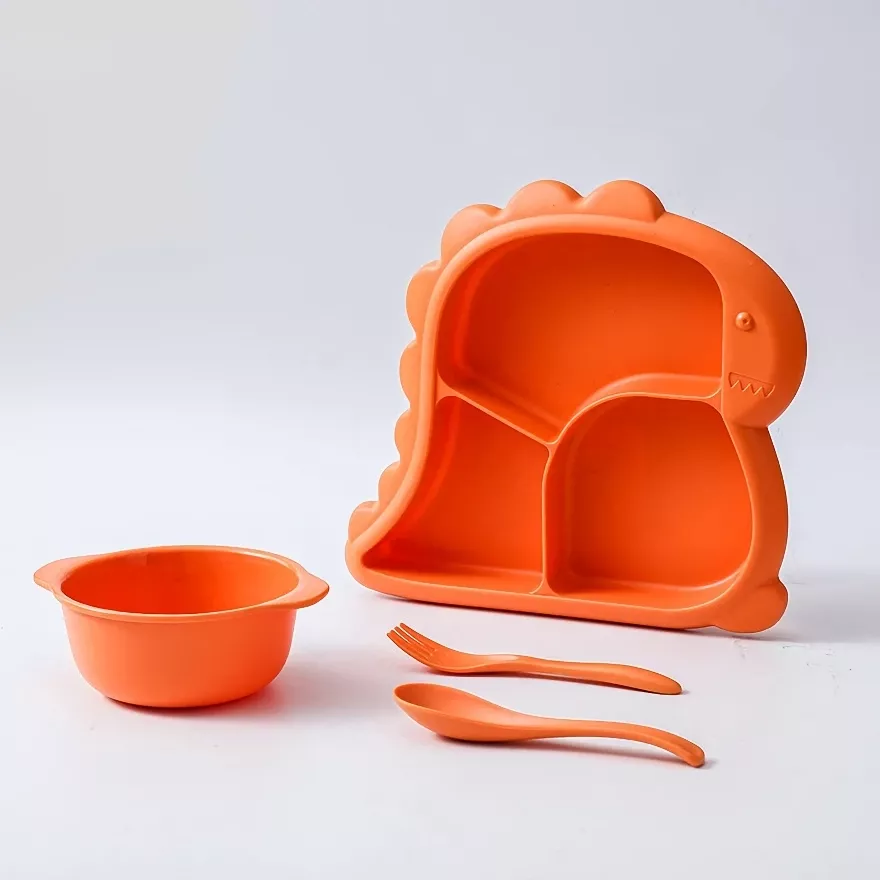 • Complete Set – Includes a divided dining plate, bowl, baby-friendly spoon, and fork.