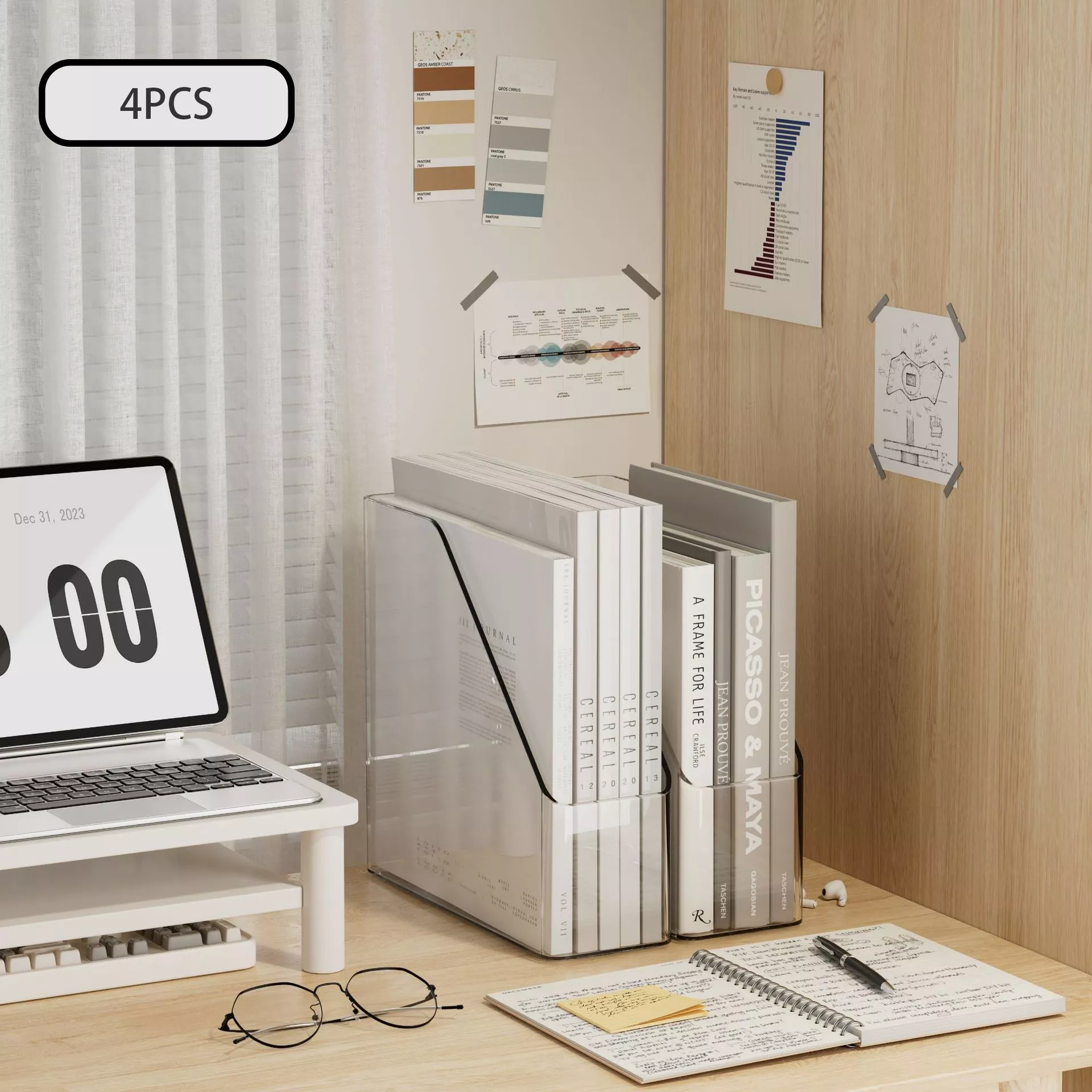 Transform your workspace with our 4PCS Clear File Folder Storage Organizer Bin Set! Designed for efficiency and style, these organizers are perfect for holding notebooks, binders, envelopes, and magazines, helping you keep your desk clutter-free and looking great. Whether at home or in your office, these organizers provide the perfect solution for maintaining order while making a stylish statement.