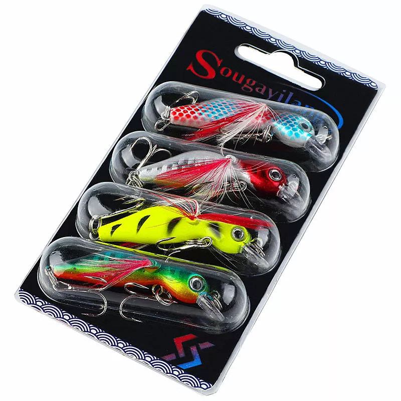 This 4PCS hard wobbler fishing lure set combines realistic design, sound attraction, and durable construction to give anglers a competitive edge. Perfect for beginners and experienced fishermen alike, these lures are ideal for lakes, rivers, streams, and ocean fishing. Upgrade your tackle box with these versatile lures and experience higher catch rates with every cast.