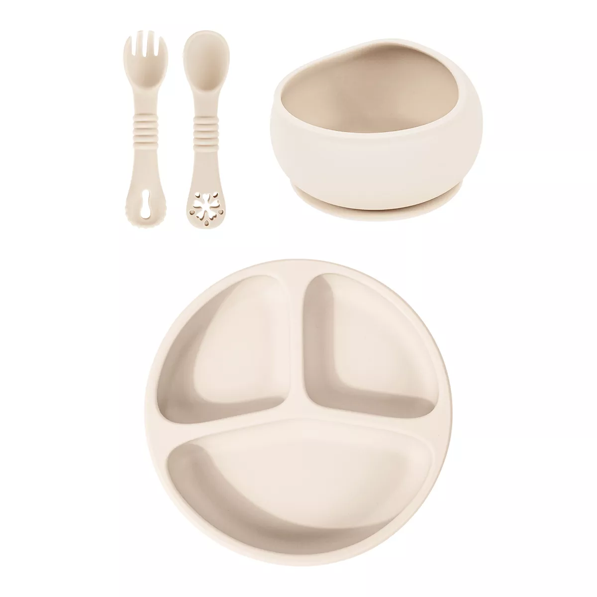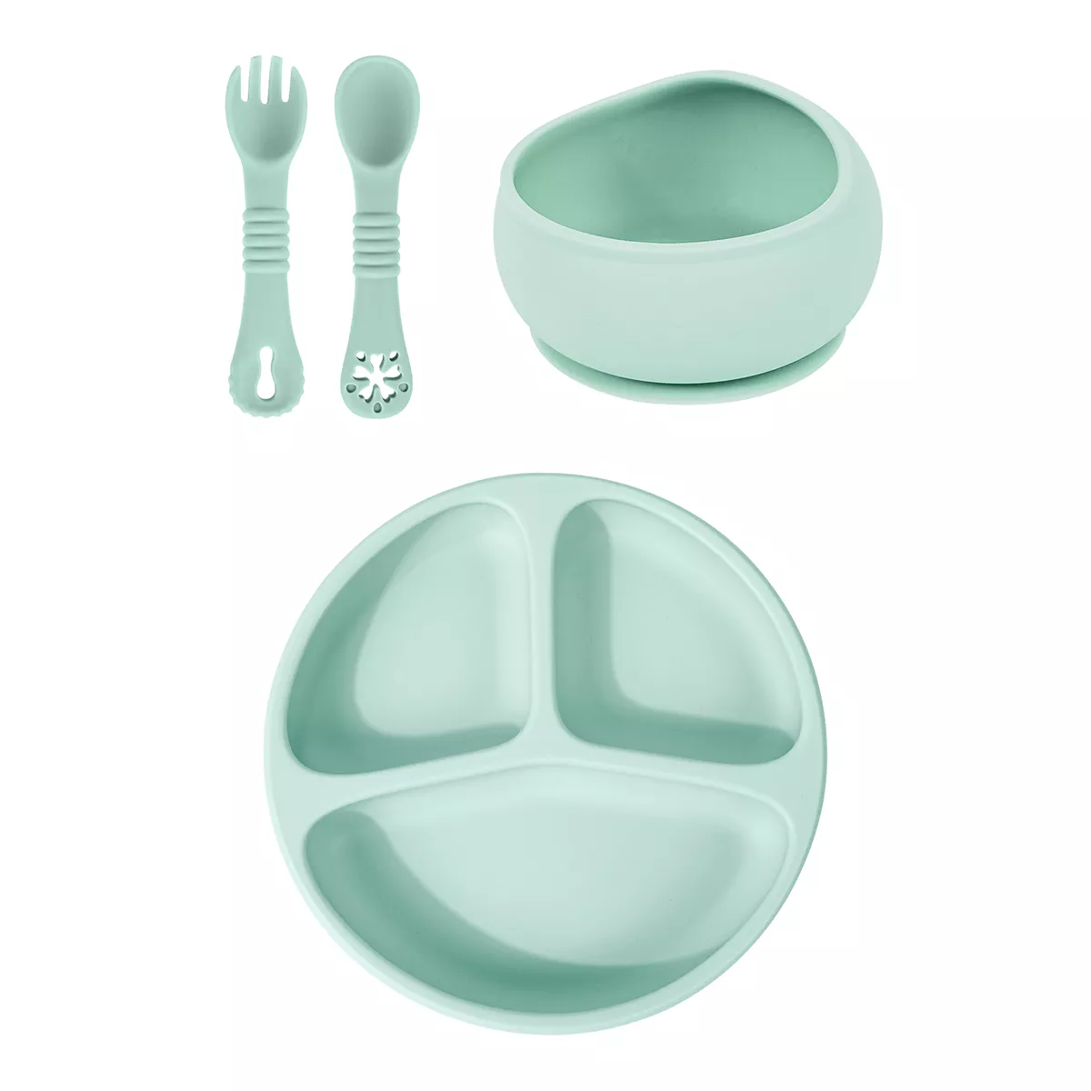 - Complete Feeding Solution – Includes a divided suction plate, bowl, spoon, and fork for all meals and snacks.