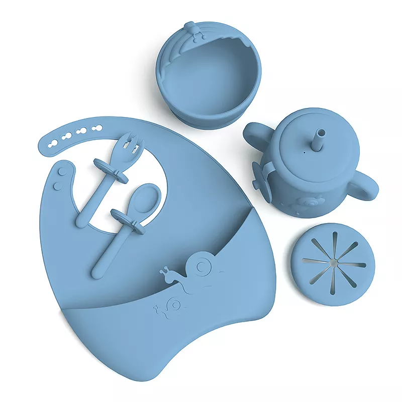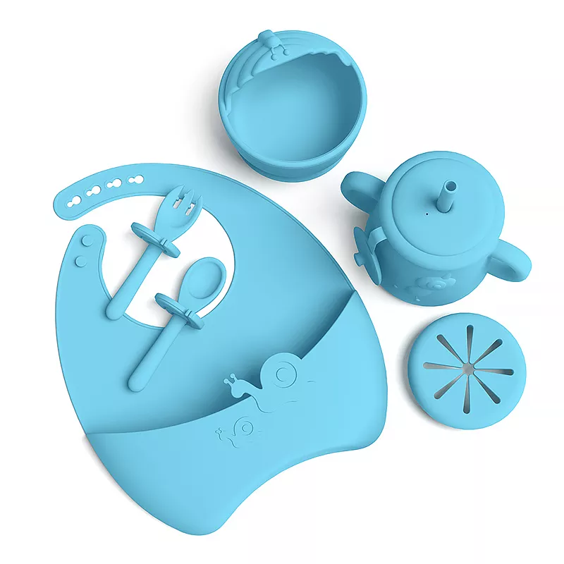 This set comes complete with a suction bowl, a baby-friendly spoon, a fork, a snack cup, and an adjustable bib. Each piece is crafted from soft yet sturdy silicone, making them comfortable to use and easy to clean. The strong suction base on the bowl helps prevent spills, while the snack cup’s flexible lid keeps food secure and accessible. The adjustable bib catches crumbs before they hit the floor, making cleanup a breeze.
