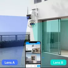 Upgrade your home or business security with this state-of-the-art 5K WiFi surveillance camera. Designed for both indoor and outdoor use, this innovative camera features a dual-lens system and dual screens, ensuring unmatched clarity whether you’re monitoring a wide-angle view or zooming in on distant details. Its sleek design and advanced features make it the ultimate choice for modern security needs.