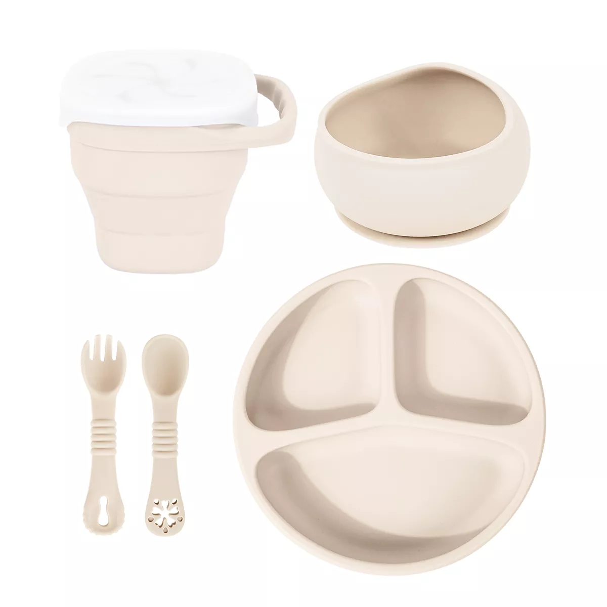 5pcs Silicone Baby Feeding Set with Suction Plate, Bowl, Spoon, Fork & Snack Cup