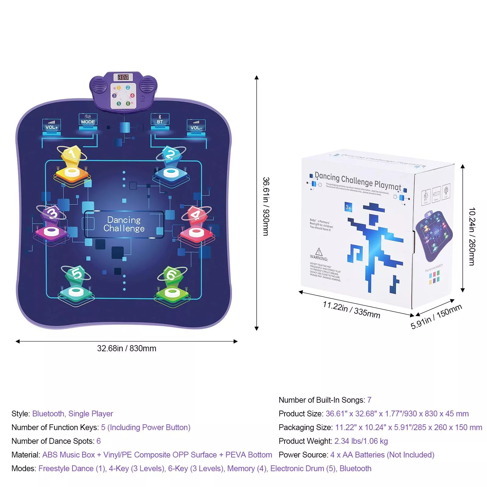 Get your child moving with this engaging and versatile dance mat. From lively birthday parties to everyday playtime, it’s perfect for keeping little ones active, entertained, and learning. Watch them step, groove, and laugh as they discover the joy of music and movement!