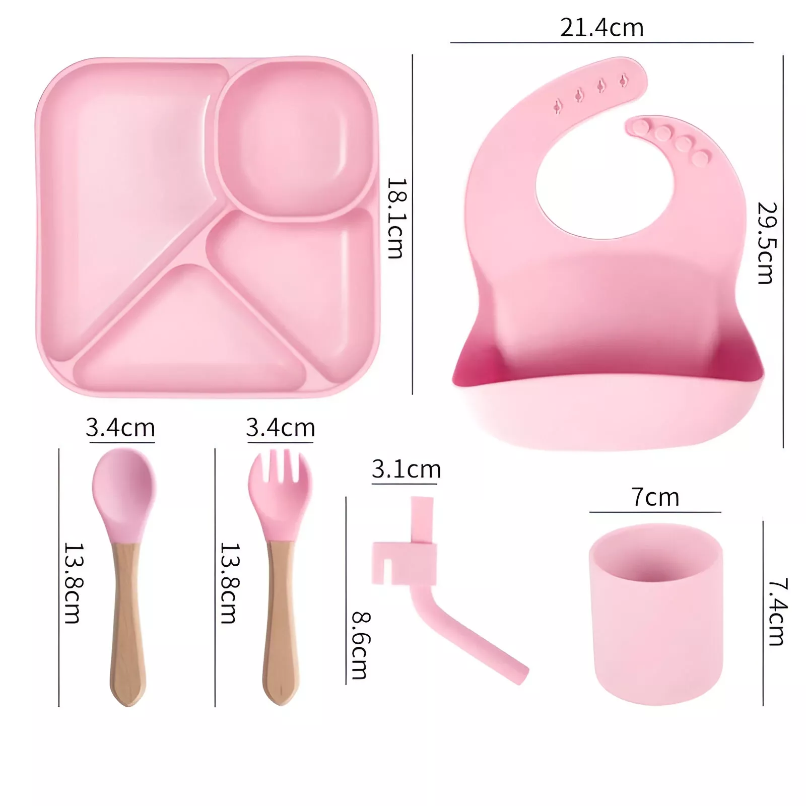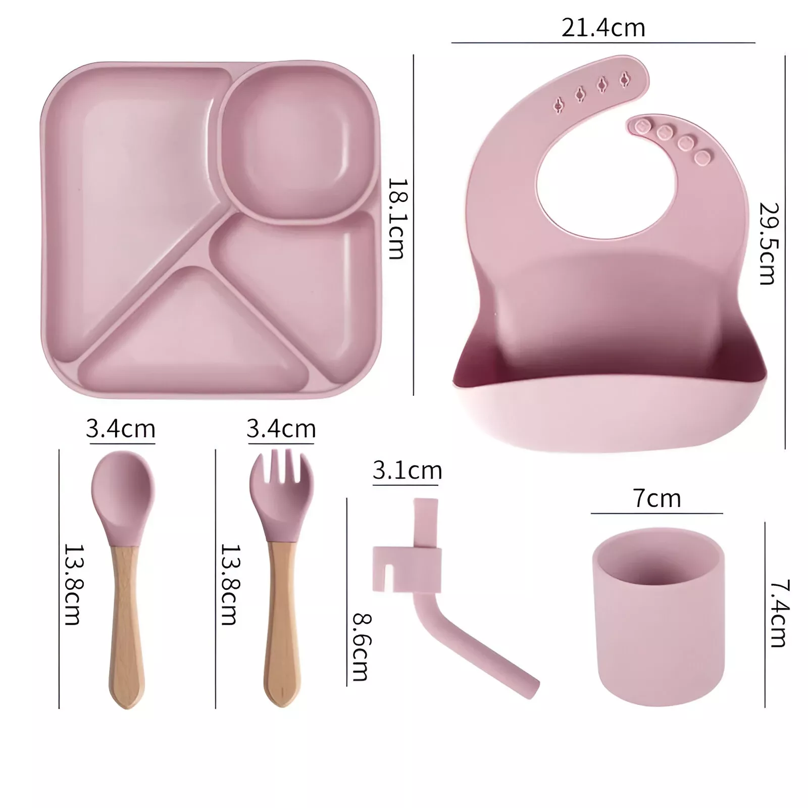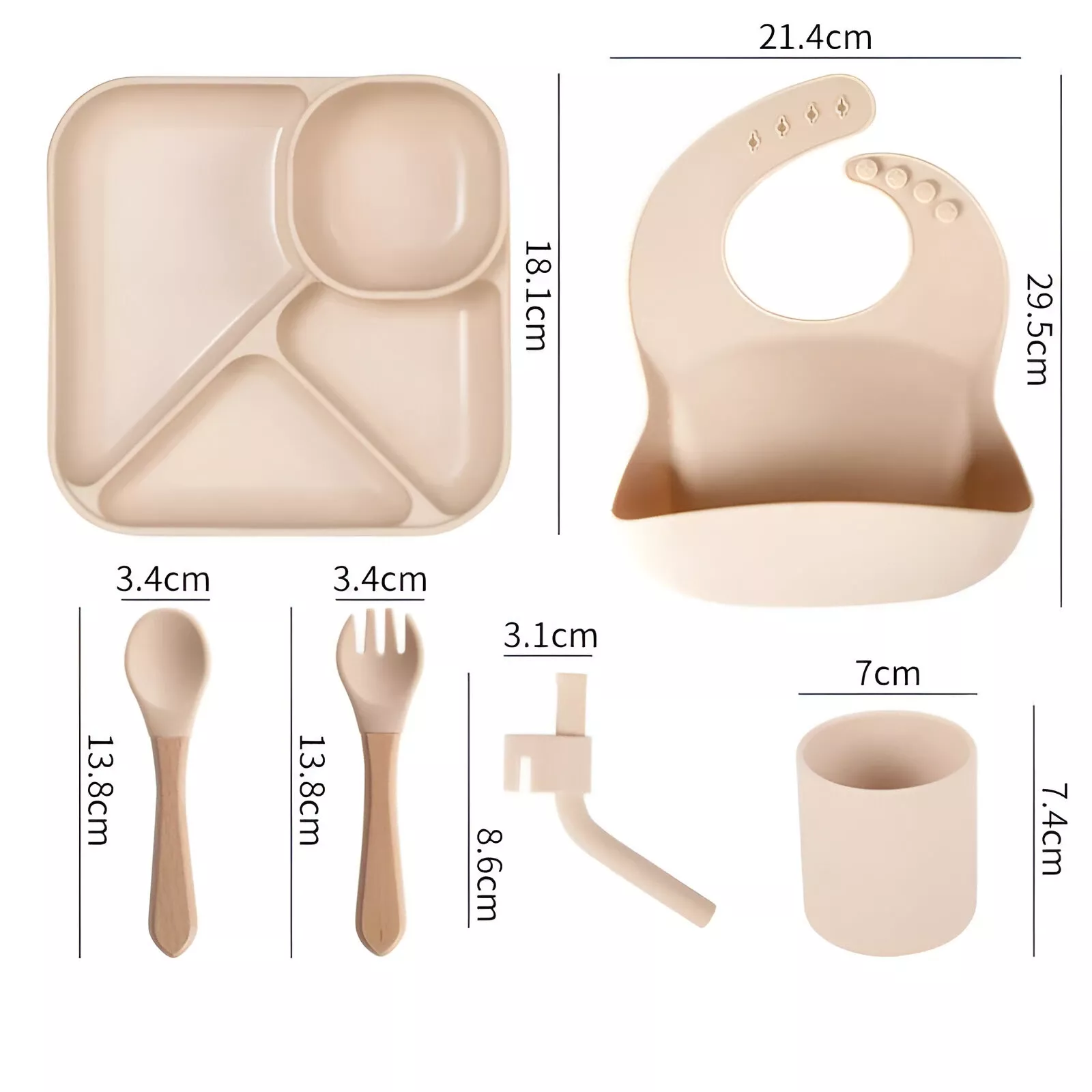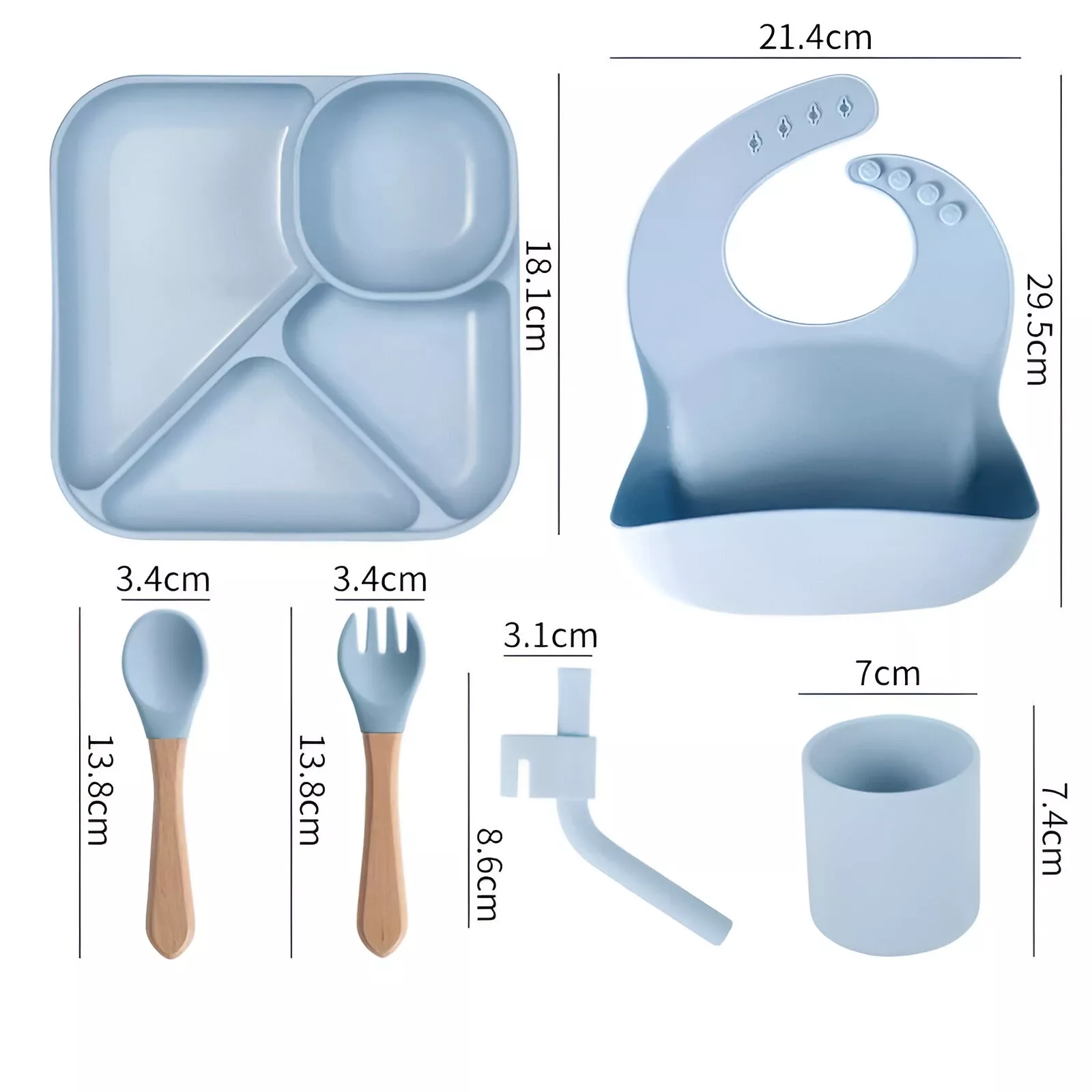 - Complete set – Includes suction plate, bowl, cup, spoon, fork, and bib for a full mealtime solution.