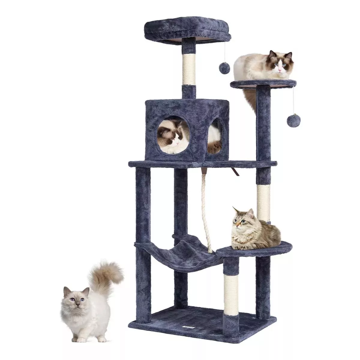 • Comfortable & Entertaining: Multiple soft, plush perches and cozy condos provide various resting spots, while natural sisal scratching posts give your cat a perfect place to scratch. Plus, fun, hanging furry balls will keep them engaged and entertained for hours.