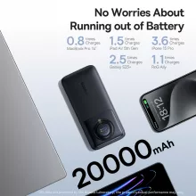 This power bank offers ultra-fast charging capabilities, delivering up to 65W of power to keep your devices fully charged in record time. Charge your MacBook and iPhone simultaneously without sacrificing speed, thanks to its dual-port output that splits power efficiently (45W + 20W). The built-in digital display keeps you informed about the real-time battery percentage, so you’re always prepared.
