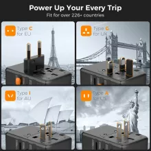 65W GaN Universal Travel Adapter with USB-C for International Use