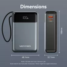 Stay connected and fully charged wherever life takes you with this 65W Portable Power Bank. Designed with a massive 20000mAh capacity, this auxiliary battery ensures your devices never run out of power—whether you’re on a long flight, a business trip, or just out and about. It features a built-in USB-C cable for effortless fast charging, eliminating the need for tangled cords and extra cables in your bag.